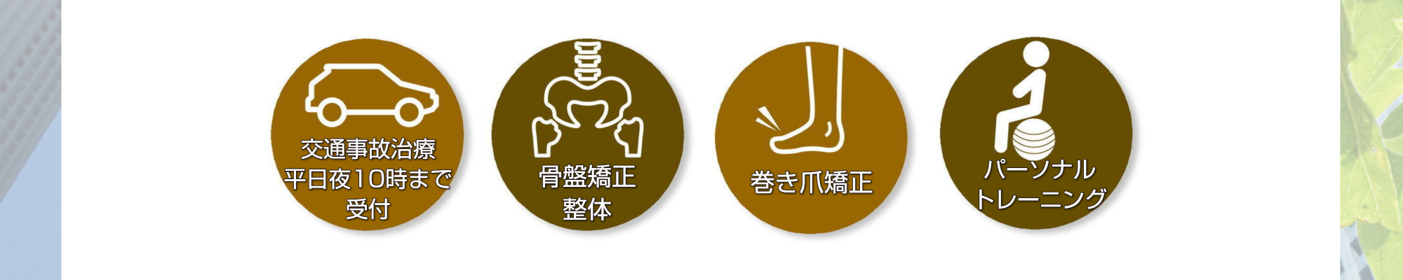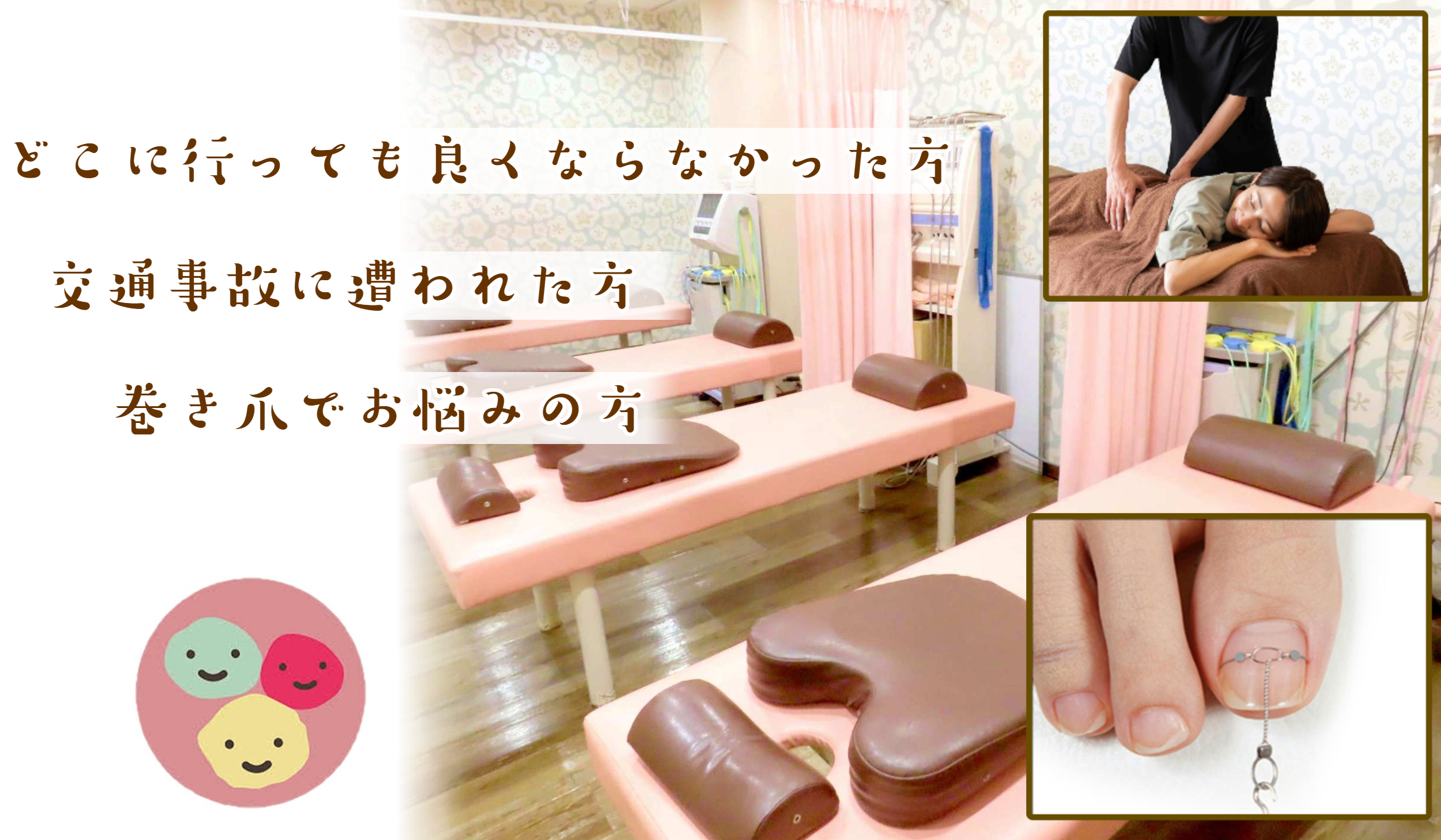 交通事故治療・整体・パーソナルトレーニング・巻き爪矯正を得意としております。他、骨盤矯正・産後骨盤ケア・肩こり・腰痛などの体の痛み、美容メニューなど幅広く対応しております。自費治療はホットペッパービューティーや、電話・LINEで予約が取れます。