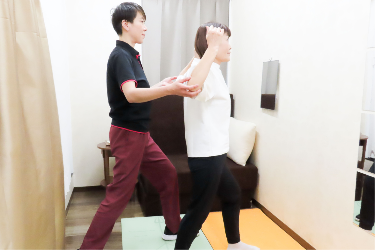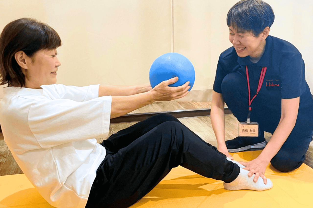 整骨院内の個室で女性トレーナーと人目を気にせず楽しく自分のペースで運動する事ができるので、運動が苦手の方にもお勧めです。
