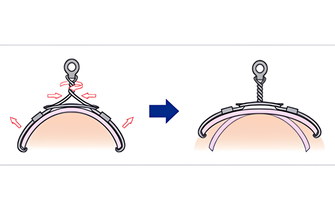中心部分を専用のワイヤーで締めて両端の爪を開いていきます。